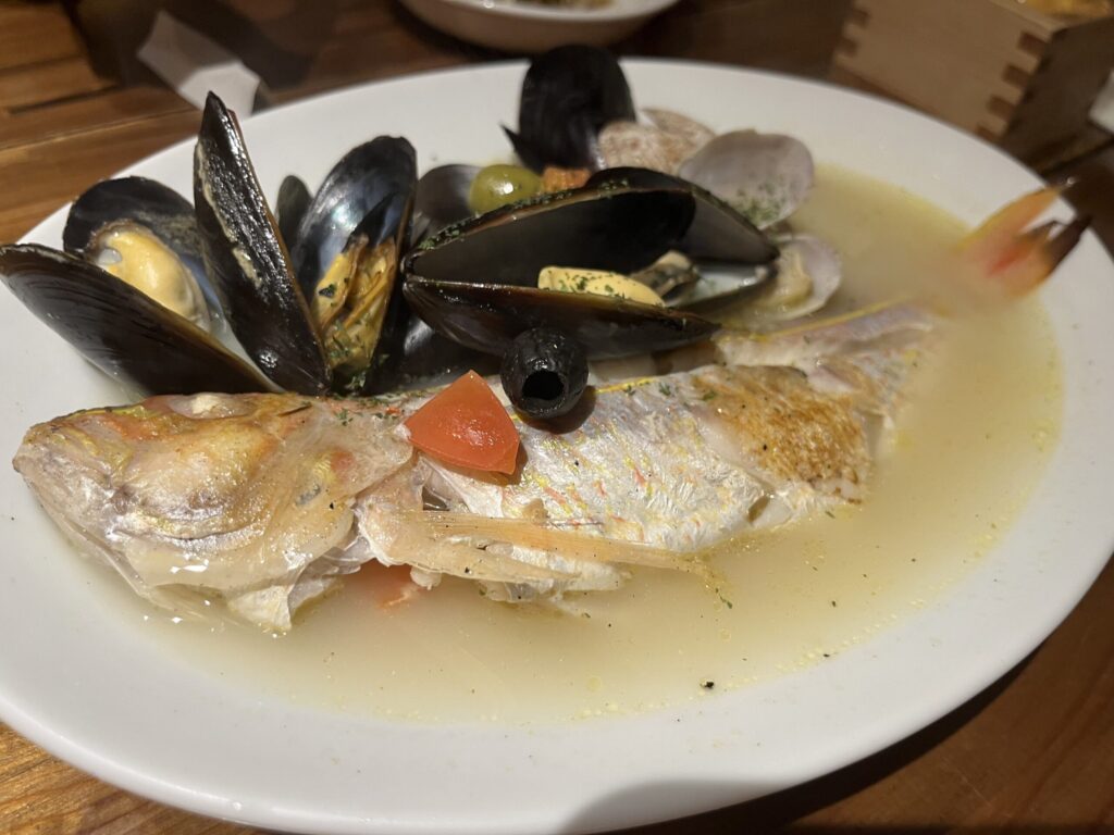 まずは本日鮮魚のアクアパッツァ 1650円(税込)