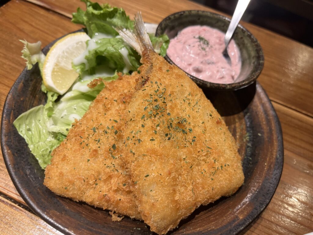 青魚と揚げ物という組み合わせはプリン体の宝庫である。本来であれば注意せねばならないが、しば漬けタルタルという魔性の言葉に吸い寄せられるように注文してしまった。