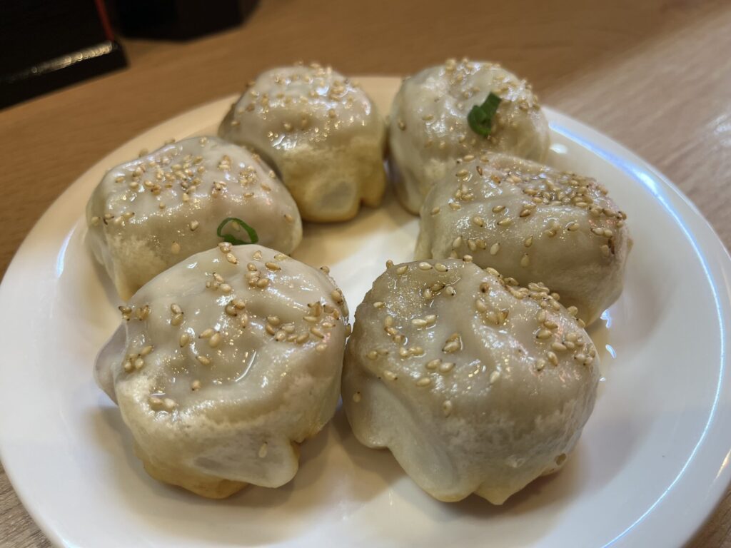 パリッとした皮にごまとネギの香りが相まって美味い!ただ、ちょっとだけ残念だったのは皮が厚めであるところ。皮の厚さがボリュームを傘増ししてしまうので、少食の人は3〜4個食べたら、そこそこお腹が膨れてくるでしょう。