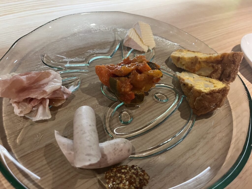 こちらは基本的にフードメニューはほとんどない。写真の”デリセット”か”生ハムセット”のどちらかを注文し、時間をかけてワインを楽しむのが正解だろう。